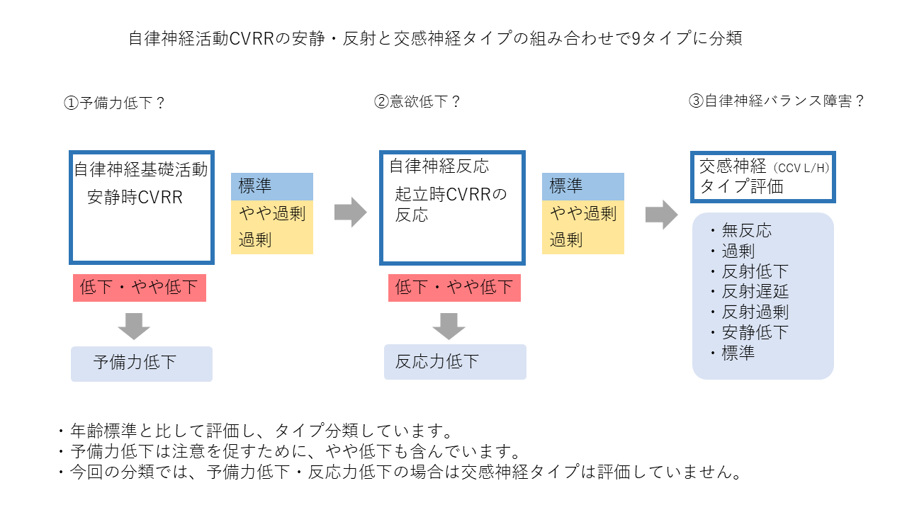 安静時・起立時のCVRR(自律神経活動)、交感神経タイプから9つのタイプに分類